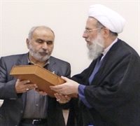 در ادامه آیت الله محمدی ری شهری دوره 15 جلدی کتاب شریف «الکافی» چاپ انتشارات دارالحدیث را به آستان مقدس حضرت ابوالفضل العباس(ع) هدیه داد.