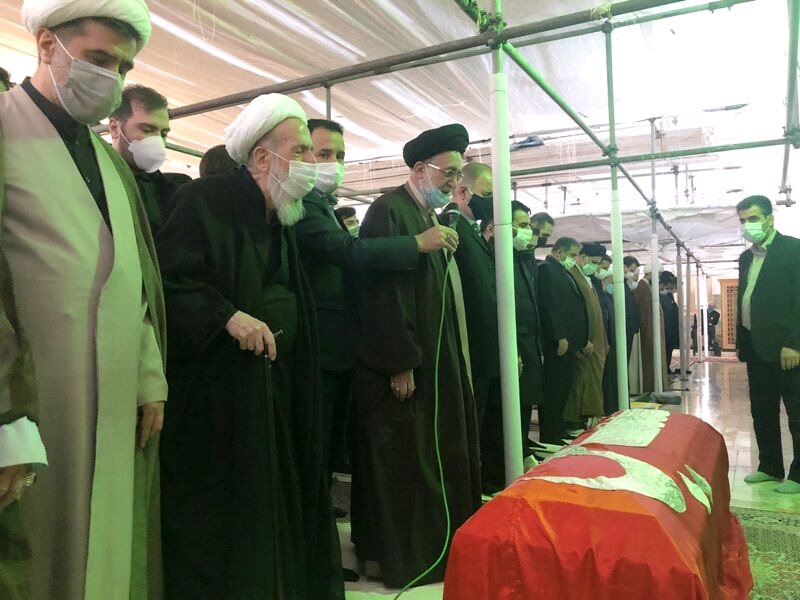 پیکر مرحومه حاجیه خانم مشکینی همسر تولییت حرم عبدالعظیم(ع) با اقامه نماز میت توسط حجت الاسلام والمسلمین سیدعلی قاضی عسگر و مشایعت مسئولان و مردم شهرستان ری در رواق امامزاده حمزه حرم عبدالعظیم(ع) به خاک سپرده شد.