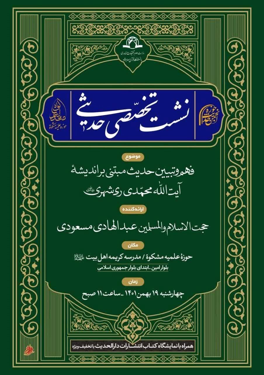 🔹موضوع: فهم و تبیین حدیث مبتنی بر اندیشه آیت الله محمدی ری شهری (ره)